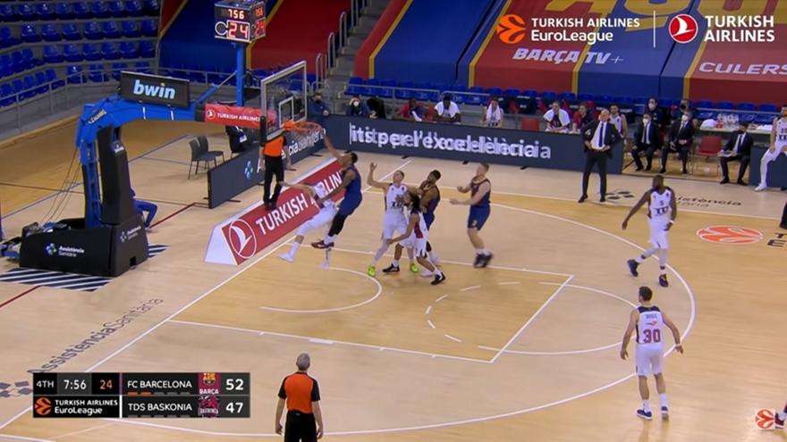 Συγκεκριμένα, το φόλοου κάρφωμα που έκανε πάνω από τον Ρόκας Γκιεντράιτις, στην αναμέτρηση της Μπαρτσελόνα με την Μπασκόνια, ήταν το νούμερο «1» του Top10 του μήνα.
