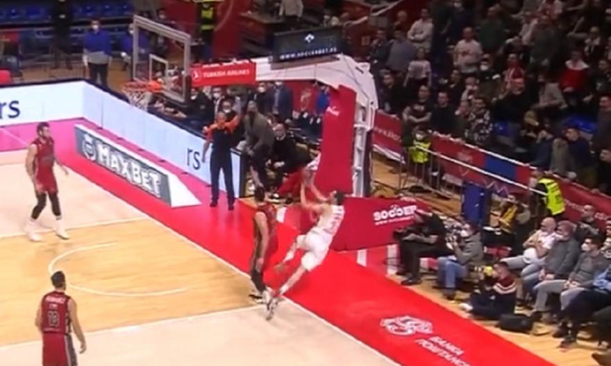 Ο 27χρονος άσος του Ερυθρού Αστέρα δέχθηκε φάουλ από τον Ρίτσι της Αρμάνι Μιλάνου και στην προσπάθειά του να πετύχει γκολ-φάουλ πέταξε την μπάλα από δύσκολη γωνία με τον ίδιο να φεύγει πάνω στην μπασκέτα, με την μπάλα να παίρνει μια περίεργη τροχιά και να καταλήγει στο καλάθι!
