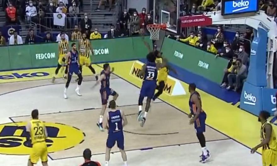 Πολύ όμορφη συνεργασία από τους παίκτες της Φενερμπαχτσέ, με τον Γκούντουριτς να παίζει ιδανικά το pick and roll με τον Φλόιντ, με τον πρώην σέντερ του Παναθηναϊκού να πετυχαίνει παλικαρίσιο καλάθι μπροστά στον Τόμπκινς της Ρεάλ.