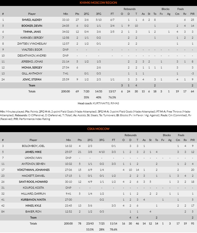 Ο Μάικ Τζέιμς ήταν ξανά το… πρώτο βιολί για την ΤΣΣΚΑ με 21 πόντους, ενώ ο Βόιγκτμαν είχε 15 πόντους και 14 ριμπάουντ. Ο Σαντ Ρος είχε κι αυτός πολύτιμη προσφορά στο παιχνίδι με 12 πόντους, 6 ριμπάουντ και 5 κλεψίματα.