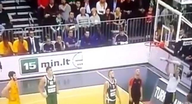 Το ‘δαμε κι αυτό στο Ζαλγκίρις-Μπαρτσελόνα! Η μπάλα είχε φτάσει σε ένα σημείο της μπασκέτας που ούτε ο… Τιραμόλα δεν την έφτανε και γι’ αυτό επιστρατεύτηκε άνθρωπος του γηπέδου, ο οποίος την ξεμπλόκαρε με το κοντάρι της σκούπας, πετυχαίνοντας μάλιστα και καλάθι!