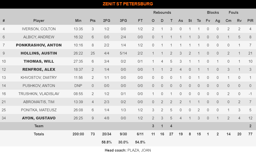 Η ομάδα του Κουρτινάιτις έφυγε με το διπλό από την έδρα της Ζενίτ (73-87) και επανήλθε άμεσα στις νίκες φτάνοντας στις πέντε στη φετινή Ευρωλίγκα (5-2).
