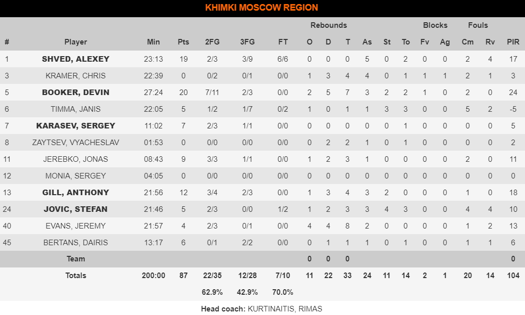 Πρωταγωνιστές για τους νικητές ο Μπούκερ (20 πόντοι, 7 ριμπάουντ) και ο Σβεντ (19 πόντοι, 5 ασίστ), ενώ από τους γηπεδούχους διασώθηκε ο Χόλινς (25 πόντοι).