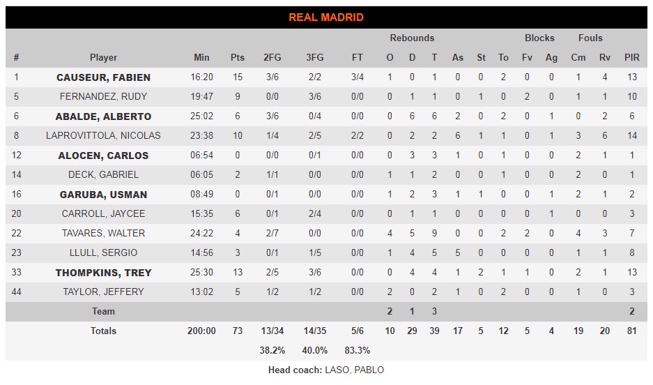 Ο έμπειρος άσος των Μαδριλένων ανταπέδωσε την εμπιστοσύνη του Λάσο που τον ξεκίνησε στην πεντάδα πετυχαίνοντας δύο κρίσιμα σουτ στο τέλος του αγώνα. Συγκεκριμένα δύο τρίποντα στη σειρά στο τελευταίο λεπτό που έφεραν τη βασίλισσα στο 71-65 στα 18 δευτερόλεπτα πριν το τέλος με την Ρεάλ τελικά να χρίζεται νικήτρια.