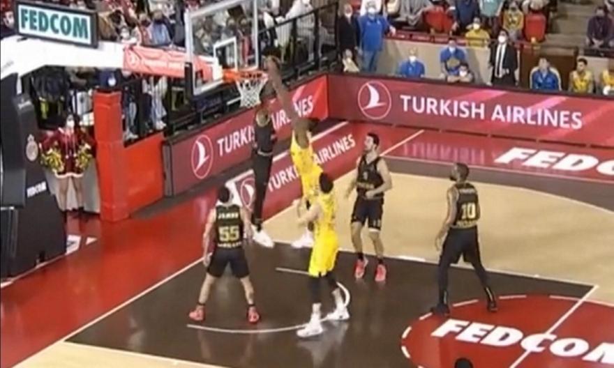 Κατέβασε τον… γενικό ο Ντόντα Χολ στον σέντερ της Μακάμπι Τελ Αβίβ, Τζέιλεν Ρέινολντς, ο οποίος επιχείρησε να καρφώσει στο καλάθι των γηπεδούχων, αλλά δέχθηκε μεγαλοπρεπέστατη τάπα από τον σέντερ της Μονακό.