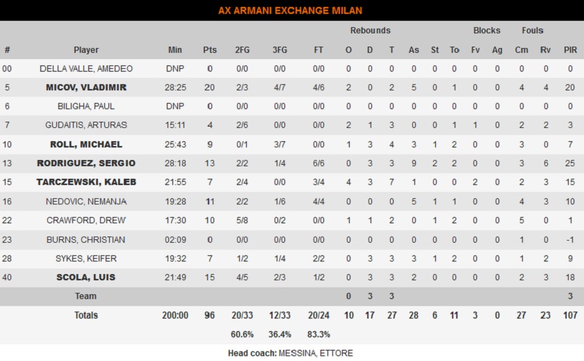 Για την ομάδα του Μεσίνα, ξεχώρισαν οι Μίτσοβ και Σκόλα με 20 και 15 πόντους αντίστοιχα.