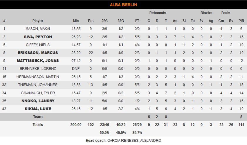 Από την άλλη, οι Γερμανοί ανέβηκαν στο 8-15, ενώ είχαν πέντε παίκτες με διψήφιο αριθμό πόντων, με τον Έρικσον να ήταν κορυφαίος με 22π.