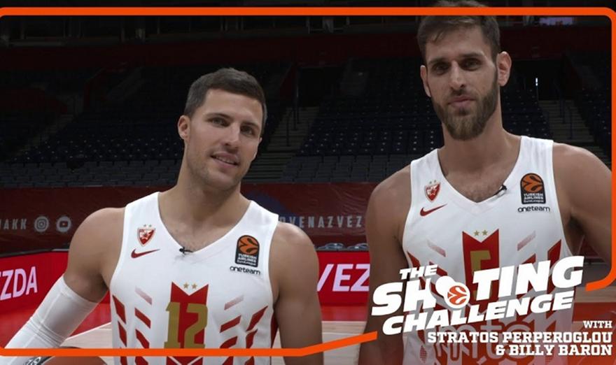 Οι δυο αθλητές του Ερυθρού Αστέρα, Μπίλι Μπάρον και Στράτος Περπέρογλου, πήραν μέρος σε έναν ιδιαίτερο διαγωνισμό σουτ για λογαριασμό της Ευρωλίγκας.