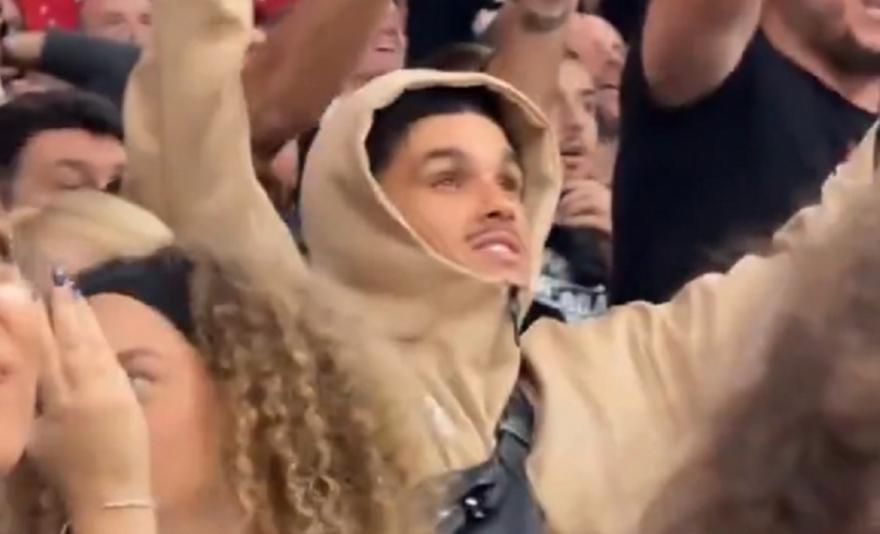 Και δεν το έκανε με κάποια πρόσκληση από τα επίσημα, αλλά σαν απλός φίλαθλος από την κερκίδα δείχνοντας να απολαμβάνει την εντυπωσιακή ατμόσφαιρα.