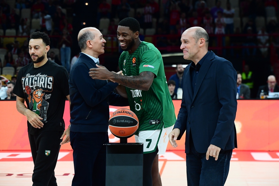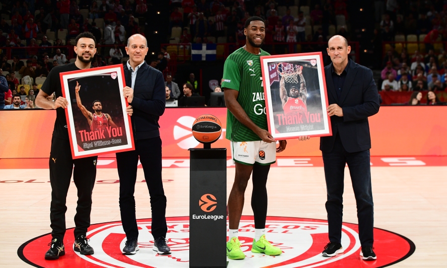 Πριν από το τζάμπολ, οι πρόεδροι του Ολυμπιακού, Παναγιώτης και Γιώργος Αγγελόπουλος, τίμησαν τους δύο αθλητές για την προσφορά τους στην ομάδα, ενώ φυσικά οι Αμερικανοί έλαβαν και το θερμό χειροκρότημα του κοινού.
