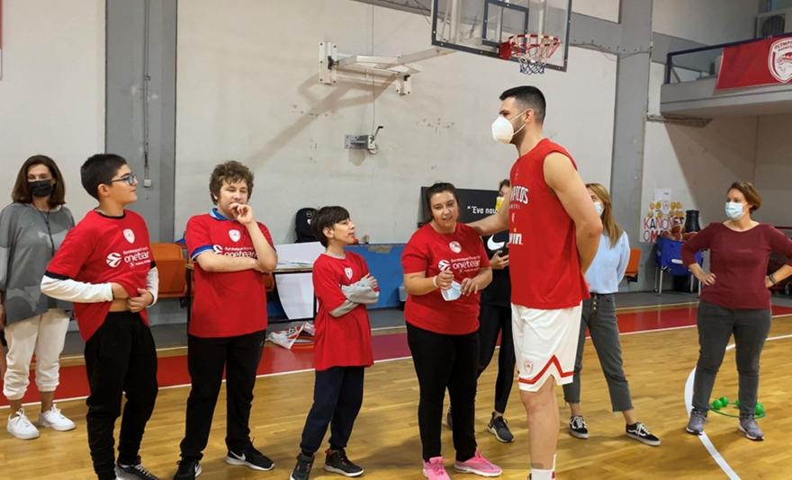 Ο φόργουορντ του Ολυμπιακού, ο μακροβιότερος πρεσβευτής του προγράμματος της Ευρωλίγκα, δεν είχε προγραμματισμένο ραντεβού με τους αθλητές μας. Ενημερώθηκε, ωστόσο, πως γινόταν προπόνηση του ONE Team στο βοηθητικό του ΣΕΦ και δεν έχασε την ευκαιρία να ξεκλέψει λίγο χρόνο από τη δική του προπόνηση, ώστε να περάσει και να καλωσορίσει προσωπικά τα νέα μέλη του προγράμματος, τους μαθητές του 1ου Ειδικού Σχολείου Αγίου Δημητρίου.