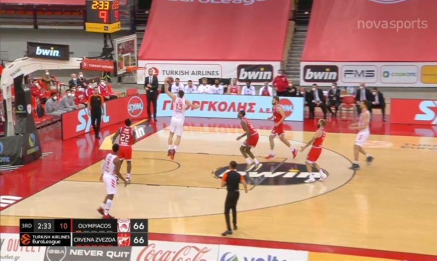 Κι όμως, δεν το έβαλε. Με το σκορ ανάμεσα σε Ολυμπιακό και Ερυθρό Αστέρα στο 66-66 στα τελευταία λεπτά της τρίτης περιόδου, ο Ντόμπριτς βρέθηκε μόνος του κάτω από το καλάθι του Ολυμπιακού αλλά... κατάφερε να αστοχήσει σε λέι απ!