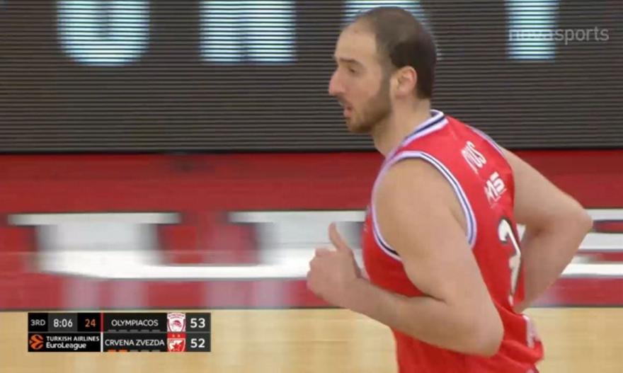 Δεν ξεχνιέται το ρημάδι το μπάσκετ! Ο Κώστας Κουφός άφησε τον Νόκο να τον ψάχνει και κάρφωσε εντυπωσιακά, κάνοντας το 55-52 για τον Ολυμπιακό ενάντια στον Ερυθρό Αστέρα στο πρώτο δίλεπτο της τρίτης περιόδου.