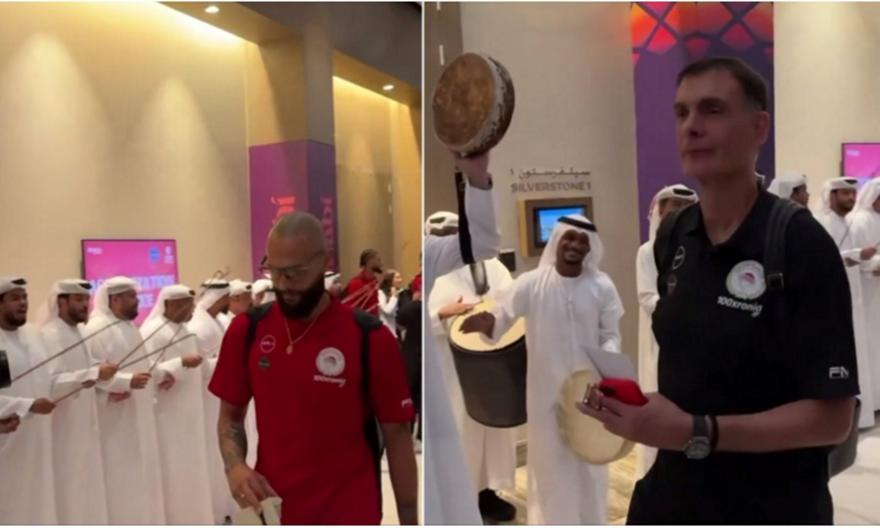 Συγκεκριμένα, με την άφιξη του Ολυμπιακού, μέλη της ομάδας Mubarak Al Atiba ήταν σε ετοιμότητα για να πραγματοποιήσουν την Al-Ayyala, μια παραδοσιακή πολιτιστική παράσταση των Ηνωμένων Αραβικών Εμιράτων.