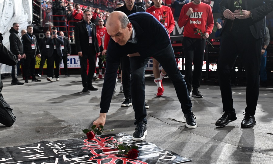 Συγκινητικές οι στιγμές που εκτυλίχθηκαν πριν την έναρξη της αναμέτρησης του Ολυμπιακού με τη Βίρτους Μπολόνια στο ΣΕΦ, δύο μέρες πριν τη συμπλήρωση 45 ετών από την μαύρη επέτειο της τραγωδίας της Θύρας 7.