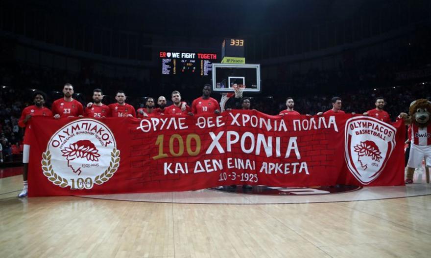 Μάλιστα, πριν από την έναρξη της αναμέτρησης, εκτός από το εντυπωσιακό κορεό που έκανε την εμφάνισή του στις κερκίδες του γηπέδου, οι παίκτες των «ερυθρόλευκων» κράτησαν ένα πανό για τα 100ά γενέθλια, το οποίο δημιούργησαν οι ίδιοι!