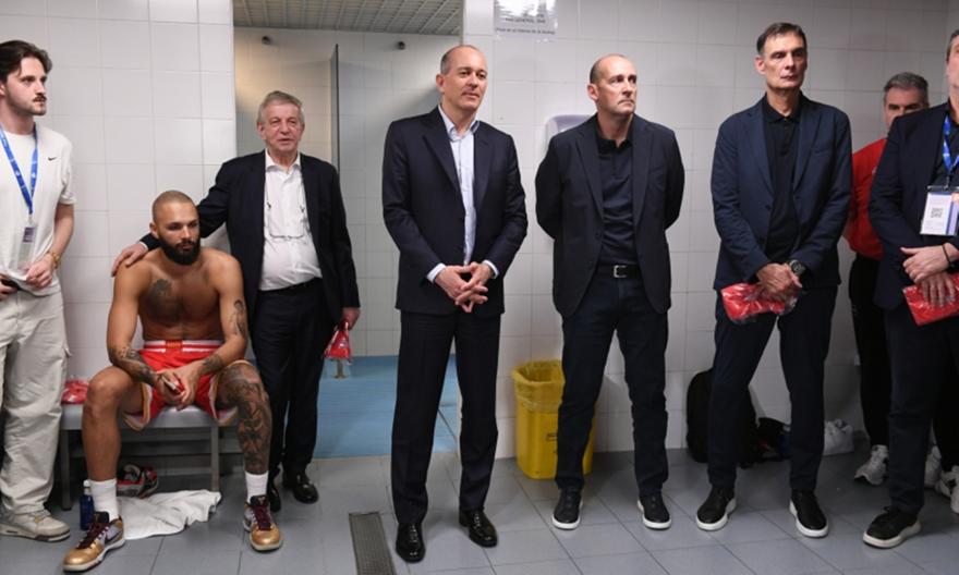 Μετά την αναμέτρηση, οι Παναγιώτης και Γιώργος Αγγελόπουλος, που ήταν στο πλευρό των «ερυθρόλευκων» στο ταξίδι στην ισπανική πρωτεύουσα, βρέθηκαν στα αποδυτήρια της ομάδας μετά την πρόκριση στο Final Four έτσι ώστε να συγχαρούν άπαντες για τη μεγάλη αυτή επιτυχία.