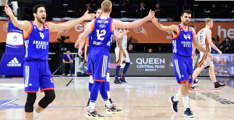 Από νωρίς η Εφές μπήκε σε θέση οδηγού, έχοντας πλουραλισμό στην επίθεση και όσο περνούσε η ώρα, όλο και περισσότερο «έχτιζε» διαφορές. Μετά το πρώτο δεκάλεπτο, η απόσταση των δύο ομάδων έφτασε σε διψήφια επίπεδα, ενώ στο 18’ το σκορ ήταν 41-26, προτού στην εκπνοή του πρώτου μέρους, οι παίκτες της Βαλένθια το… μαζέψουν για το 43-31 στο 20’. Οι Τούρκοι δεν άφηναν το πόδι από το γκάζι, επιβεβαίωναν στο παρκέ την ανωτερότητά τους κι έφτασαν στο +19 στο 27’ (59-40). Οι πρωταθλητές Ισπανίας δεν το έβαλαν κάτω κι αφού ροκάνισαν τη διαφορά ως τη λήξη της τρίτης περιόδου (63-53), κατάφεραν με… τρίποντες βόμβες του Γκριν να πλησιάσουν ακόμα και στους 5 (63-38), επτά λεπτά πριν τη λήξη. Εκεί, όμως, έχυσαν τη καρδάρα με το γάλα… Έχασαν κάθε επαφή με το αντίπαλο καλάθι, ο ΜακΚόλουμ πήρε φωτιά και ουσιαστικά με προσωπικό του show «τέλειωσε» οριστικά την υπόθεση νίκη, φτάνοντας στο τελικό 82-66.