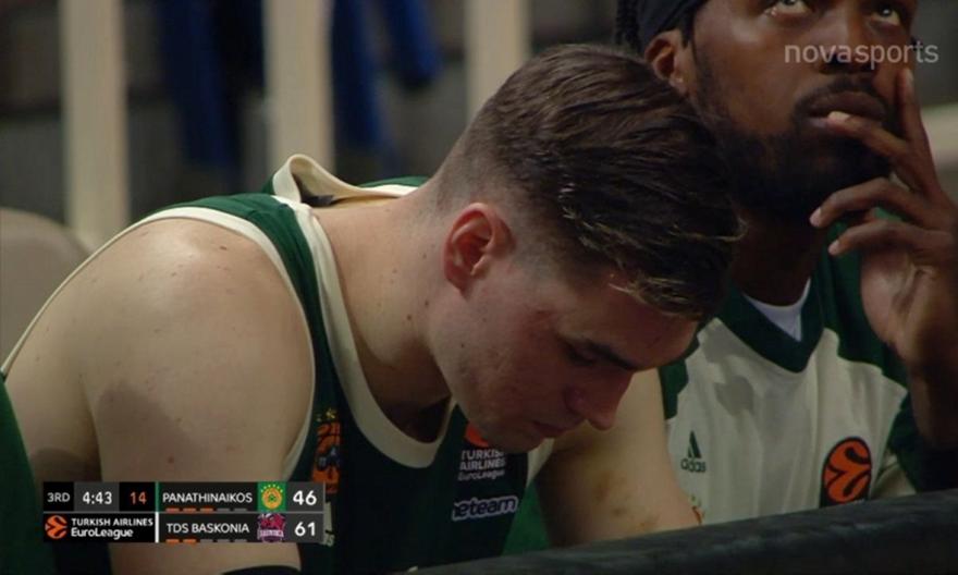 Ο Ακίλε Πολονάρα έκανε το 5/5 από την γραμμή του τριπόντου στο Παναθηναϊκός-Μπασκόνια και ο Μάριο Χεζόνια δεν μπορούσε να κρύψει την απογοήτευσή του.