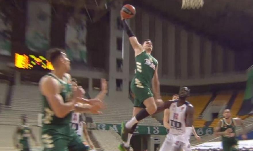 Ο Κροάτης άσος προσέφερε θέαμα με ένα άκρως εντυπωσιακό κάρφωμα που έκανε στα μέσα της πρώτης περιόδου της αναμέτρησης του Παναθηναϊκού με τους Βάσκους.