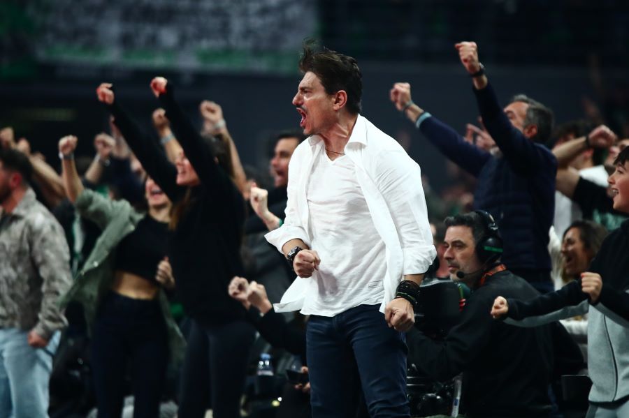 Με το παιχνίδι να πηγαίνει πόντο-πόντο και την ατμόσφαιρα να «βράζει», ο ισχυρός άνδρας της ΚΑΕ αποφάσισε στο τέταρτο και τελευταίο δεκάλεπτο να κατέβει στα court seats, παίρνοντας τη θέση του στο παρκέ για να ζήσει από ακόμη πιο κοντά τη μάχη των «πρασίνων».