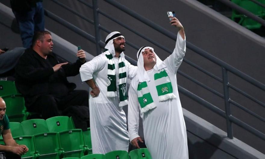 Σήμερα, ωστόσο, στο ΟΑΚΑ επικρατεί ενθουσιασμός, ενώ είναι χαρακτηριστική μια φωτογραφία δύο μερακλήδων οπαδών του Παναθηναϊκού, που έχουν κάνει την εμφάνισή τους στο γήπεδο φορώντας κελεμπίες ενόψει, φυσικά, Άμπου Ντάμπι!