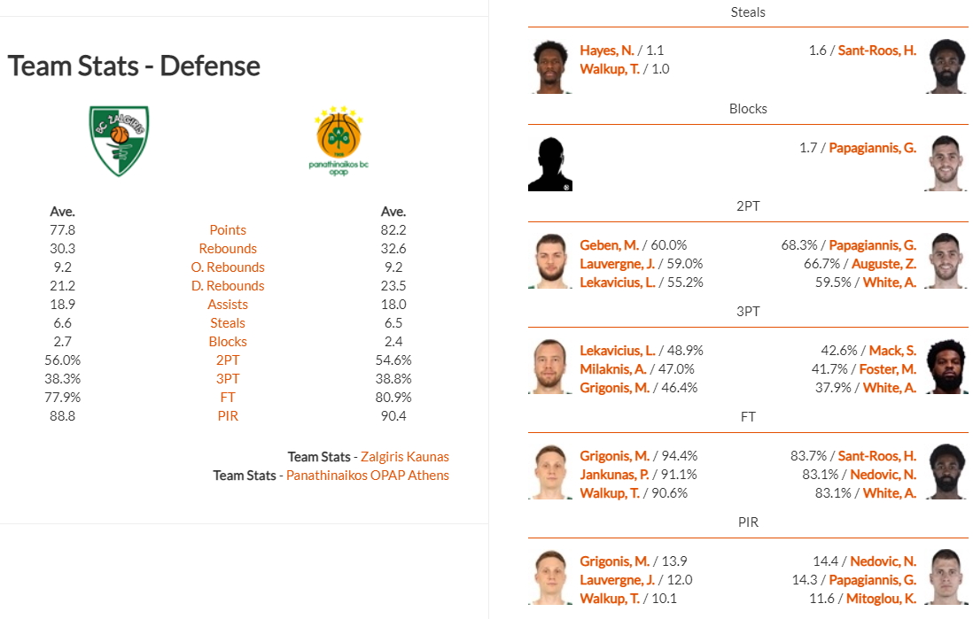 Από την άλλη, οι Λιθουανοί είναι οι πιο εύστοχοι στη διοργάνωση σε βολές (84%) και τρίποντα (42%), την ώρα που οι παίκτες του Κάτας εκτελούν με το δεύτερο χειρότερο ποσοστό έξω από τα 6,75μ. (35,2%) και το χειρότερο στις βολές (74,9%).