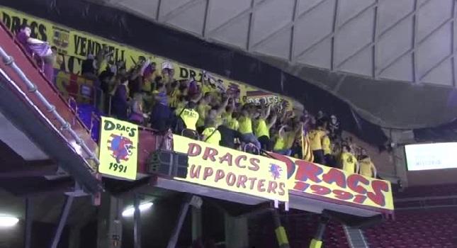 Απέναντί τους, κάθονταν οι περίπου εκατό φίλοι του Ολυμπιακού που ακολούθησαν την ομάδα στην Βαρκελώνη και με τη σειρά τους, φώναζαν συνθήματα υπέρ της ομάδας τους. Το εκπληκτικό είναι πως οι δύο πλευρές είχαν συμφιλιωθεί για τα καλά, με αποτέλεσμα να φτάσουν στο σημείο οι οπαδοί των «μπλαουγκράνα» να τραγουδούν συνθήματα των «ερυθρόλευκων» και οι Έλληνες να επευφημούν τους Καταλανούς!