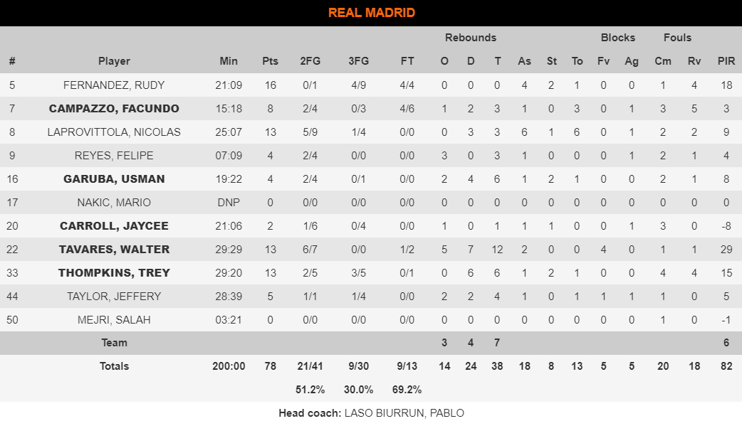 Η ομάδα του Λάσο ήταν επιβλητική στο κρίσιμο δεκάλεπτο (18-32 το επιμέρους σκορ) και πανηγύρισε την 6η συνεχόμενη νίκη της στην Ευρωλίγκα (21-6 το ρεκόρ της). Ταβάρες (13 πόντοι, 12 ριμπάουντ), Φερνάντεθ (16 πόντοι, 4 ασίστ), Τόμπκινς (13 πόντοι, 6 ριμπάουντ) και Λαπροβίτολα (13 πόντοι, 6 ασίστ) διακρίθηκαν για τη «βασίλισσα».