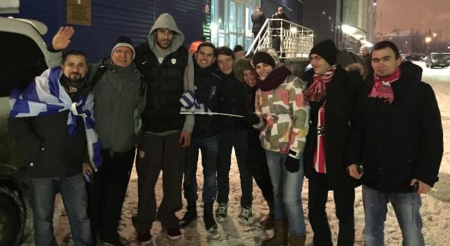 Σε κάθε γωνιά της γης υπάρχουν Έλληνες. Όπως αποδεικνύεται και… φίλοι του Ολυμπιακού. Δέκα εξ αυτών, που ζουν μονίμως στο Νόβγκοροντ, βρέθηκαν στο πλευρό των «ερυθρόλευκων» στον αγώνα με τη Νίζνι.