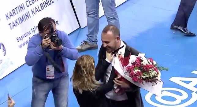 Η Εμπόριο Αρμάνι Μιλάνο είχε φτιάξει διψήφια διαφορά απέναντι στην Αναντολού Εφές νωρίς στο παιχνίδι της Πόλης. Η ατμόσφαιρα μύριζε «κηδεία», αλλά για λίγο το κλίμα άλλαξε, όταν ένας φίλος της ομάδας έκανε πρόταση γάμου στην καλή του.