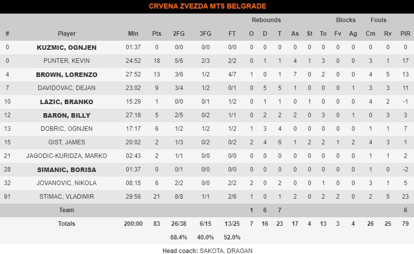 Η ομάδα του Ντράγκαν Σάκοτα πέτυχε την τέταρτη σερί νίκη στη διοργάνωση (μετά από αυτές με Ολυμπιακό, Ζενίτ και Μπάγερν Μονάχου), βελτιώνοντας το ρεκόρ της στο 9-9.