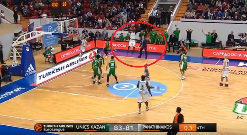 Δεν είναι όμως μόνο αυτό… Στην τελευταία επίθεση του Παναθηναϊκού και πριν ο Ντιμίτρις Νίκολς επιχειρήσει σουτ, ο προπονητής της Ούνιξ, Εβγκένι Πασούτιν, όχι μόνο βρίσκεται εντός αγωνιστικού χώρου, αλλά… παίζει και άμυνα (!) έχοντας το χέρι του στην πλάτη του Αμερικανού, όπως φαίνεται και στην κεντρική φωτογραφία. Κάτι που επίσης δεν καταλογίστηκε.