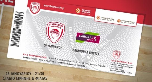 «Η Διεύθυνση Εισιτηρίων της Κ.Α.Ε. ΟΛΥΜΠΙΑΚΟΣ ανακοινώνει ότι η διάθεση των εισιτηρίων για τον αγώνα Euroleague, OLYMPIACOS – LABORAL KUTXA VITORIA, ο οποίος θα διεξαχθεί την Παρασκευή 23/01/2015 με ώρα έναρξης 21:30 θα πραγματοποιηθεί ως εξής: