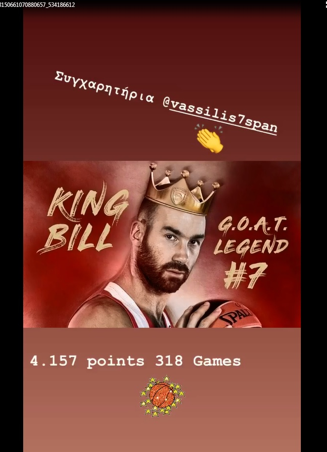 Ο πρώτος -πλέον- σκόρερ της Ευρωλίγκας, Βασίλης Σπανούλης, δέχθηκε τα συγχαρητήρια του δεξιού μπακ του Ολυμπιακού, Βασίλη Τοροσίδη.