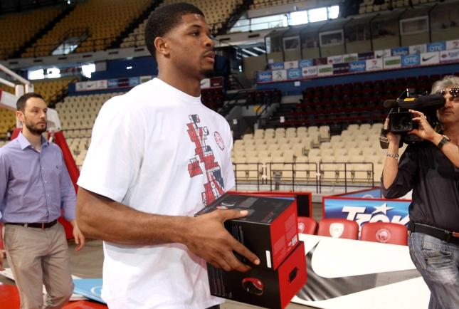 Ο Αμερικανός σέντερ, έκανε δώρο στους συμπαίκτες του από ένα ζευγάρι customized ακουστικά με το σήμα του Ολυμπιακού.