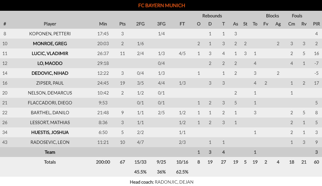 Με ένα ξέσπασμα στα μέσα του δεύτερου δεκαλέπτου, οι «μπλαουγκράνα» απομακρύνθηκαν και στην ουσία καθάρισαν σε εκείνο το σημείο: με σερί 11-0 μετέτρεψαν το 22-26 (14’) σε 22-37 (17’), με τον Μίροτιτς να παίρνει μπρος. Το ημίχρονο ολοκληρώθηκε με την ομάδα του Πέσιτς στο +14 (25-39) την Μπάγερν να μην έχει λύσεις επιθετικά.
