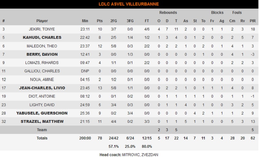 Από τους Γάλλους, που έπεσαν στο 10-18, ξεχώρισαν οι Ζαν-Σαρλ και Μαλεντόν με 13 και 12 πόντους αντίστοιχα.