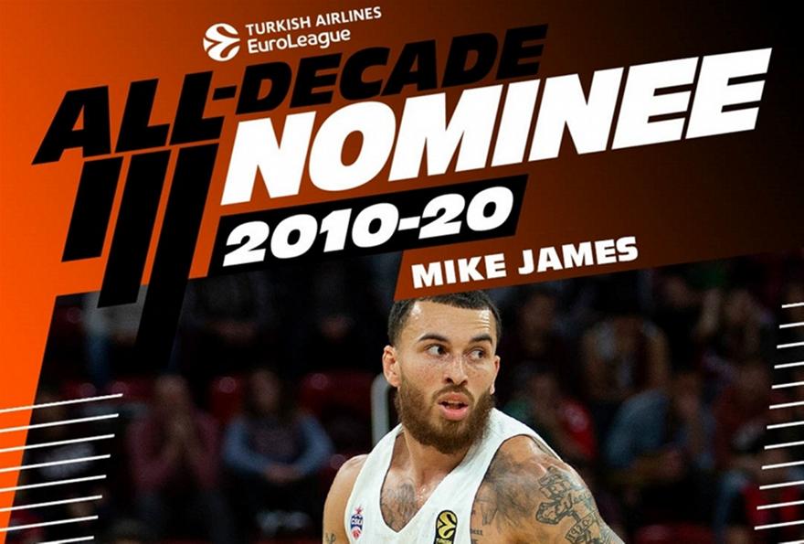 Ανάμεσα στους 50 υποψηφίους για την καλύτερη ομάδα της Ευρωλίγκας στην δεκαετία 2010-2020 είναι ο Μάικ Τζέιμς.