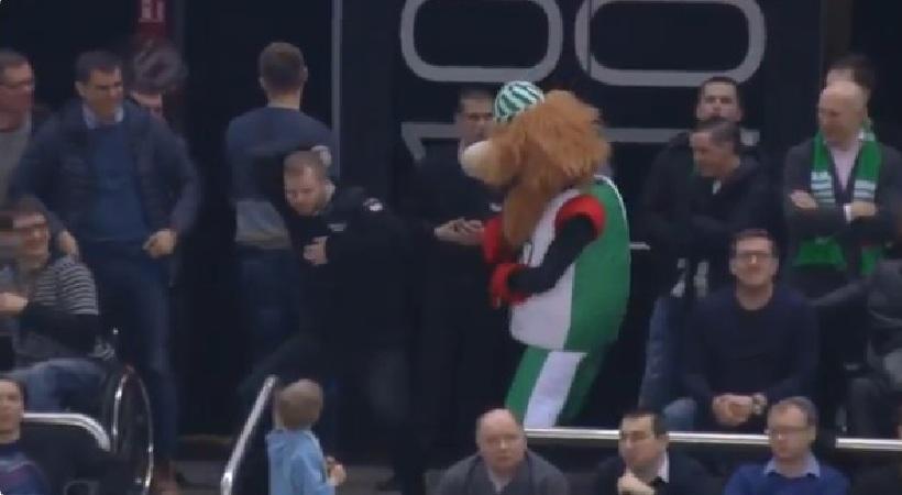 Στο περιθώριο του χθεσινού αγώνα της λιθουανικής ομάδας με τον Παναθηναϊκό Superfoods για την 25η αγωνιστική της Ευρωλίγκας, η μασκότ της ομάδας… προκάλεσε έναν εκ των ανδρών της ασφάλειας του γηπέδου σε χορευτική μονομαχία. Εκείνος, άφησε για λίγο κατά μέρους τη σοβαρότητα που πρέπει να επιδεικνύει στην άσκηση του καθήκοντος και ανταποκρίθηκε.