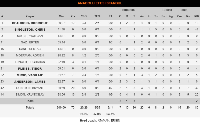 Δίνοντας άλλη μια παράσταση υψηλού επιπέδου, νίκησε κατά κράτος την Αναντολού Εφές με 89-73 και έκανε το «4 στα 4» στη Euroleague! Από την άλλη, η τουρκική ομάδα συνεχίζει να απογοητεύει στο ξεκίνημα της σεζόν, αφού υπέστη την τρίτη ήττα της σε τέσσερις αγώνες.