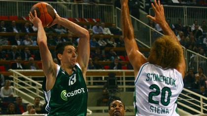 Ζωντανός στη διεκδίκηση της πρώτης θέσης του δευτέρου ομίλου της Ευρωλίγκας παρέμεινε ο Παναθηναϊκός νικώντας σε ένα παιχνίδια για γερά νεύρα τη Σιένα με 81-76 στο ΟΑΚΑ. Πολλές οι διακυμάνσεις στο σκορ, αλλά και στην απόδοση των «πρασίνων» στη διάρκεια του αγώνα. Κορυφαίοι από πλευράς γηπεδούχων οι Φώτσης και Πέκοβιτς, που πέτυχαν από 14 πόντους, πήραν την ομάδα πάνω τους στα τελευταία λεπτά Διαμαντίδης και Γιασικεβίτσιους.