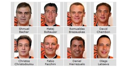 Οι υπόλοιπες επτά «σφυρίχτρες» είναι ο Ισραηλινός Σμούελ Μπαχάρ, ο Σλοβένος Ματέι Μπολτάουζερ, ο Λιθουανός Ρομουάλντας Μπραζάουσκας, ο Γάλλος Νταβίντ Σαμπόν, ο Ιταλός Φάμπιο Φακίνι, ο Ισπανός Ντανιέλ Ιερεθουέλο και ο Λετονός Όλεγκς Λάτισεφς. Οι δύο κομισάριοι των αγώνων της διοργάνωσης θα είναι ο Γάλλος Γκόραν Ράντονιτς και ο Ιταλός Αλεσάντρο Τεοφίλι.