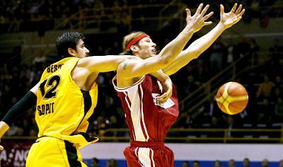 Ο Πίνι Γκέρσον πάντως είχε να αντιμετωπίσει τα γρήγορα φάουλ που «φορτώθηκαν» οι Ζίζιτς, Σχορτσιανίτης και Βασιλόπουλος. Ο Ντόμερκαντ έμεινε άποντος σε εννέα λεπτά συμμετοχής στην πρώτη περίοδο και δε ξαναχρησιμοποιήθηκε από τον «Πίνχας» μέχρι τη λήξη του ημιχρόνου. Στο δεύτερο δεκάλεπτο χρειάστηκε να περάσουν τρία λεπτά για να σημειώσει ένα καλάθι η ελληνική ομάδα. Οι Πεν, Άκερ και Ζίζιτς ανέλαβαν τη «σκυτάλη» στο σκοράρισμα, με τους Πολωνούς να έχουν να αντιτάξουν σε όλα αυτά την άμυνα ζώνης και τη βελτίωση στα ριμπάουντ. Το τρίτο φάουλ του «Σόφο» στις αρχές της δεύτερης περιόδου τον έστειλε αμέσως στον πάγκο και έτσι οι Χούκιτς και Αντερσον μείωσαν στους εφτά πόντους, με αφορμή και το σετ παιχνίδι που έπαιζαν οι «ερυθρόλευκοι». Το πρώτο εύστοχο τρίποντο του Παπαμακάριου «εκτόξευσε» τη διαφορά στο +14 και οι απέλπιδες προσπάθειες των γηπεδούχων απλά ολοκλήρωσαν το ημίχρονο στο –10 (28-38).