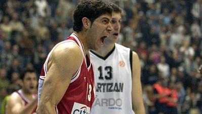 Από τη μεριά του, ο Πίνι Γκέρσον βλέποντας τον Παναγιώτη Βασιλόπουλο να φορτώνεται γρήγορα με δυο φάουλ, αποφάσισε να βάλει τον Σοφοκλή Σχορτσιανίτη στο παρκέ, κάτι που αργότερα θα αποδεικνυόταν πολύ σοφή κίνηση. Ο διεθνής σέντερ με τον όγκο και την δύναμη του περιόρισε κάθε είδους κίνηση των Σέρβων μέσα στο καλάθι με αποτέλεσμα να αναγκαστούν να καταφύγουν σε ορισμένα σουτ τριών πόντων, τα οποία στην πλειοψηφία τους, βρήκαν «σίδερο». Το πρώτο δεκάλεπτο έληξε με συνεχόμενα τρίποντα των Πεν και Ντόμερκαντ, που έστειλαν τη διαφορά στο +11 (19-30).