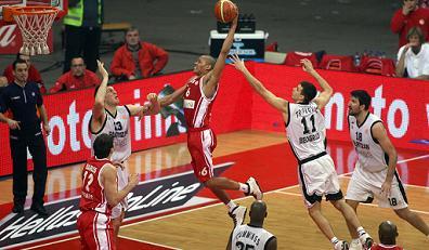 Από την πλευρά του, ο Ολυμπιακός κατάφερε να ισοφαρίσει ξανά με τρίποντο του εκπληκτικού Βασιλόπουλου, που προηγουμένως είχε αλλοιώσει λέι απ του Ντρόμπνιακ. Στη συνέχεια οι «ερυθρόλευκοι» πήραν το προβάδισμα με 67-66 για να έρθει ο Πέροβιτς με γκολ φάουλ να δώσει εκ νέου το προβάδισμα στην Παρτιζάν με 67-69. Σε εκείνο το σημείο ήρθε η ώρα των αμερικανών του Ολυμπιακού για να μιλήσουν.