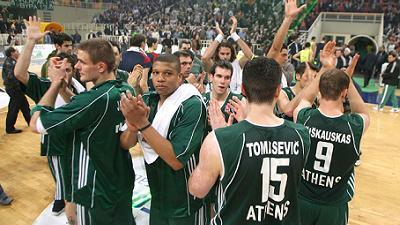 Την πρόκριση στο Φάιναλ Φορ της Αθήνας που θα γίνει το διάστημα 4-6 Μαΐου στο ΟΑΚΑ, πανηγυρίζει ο Παναθηναϊκός μετά το άνετο πέρασμα του από την Μόσχα όπου επικράτησε της Ντιναμό με 73-65 κάνοντας το 2-0 στην σειρά και παίρνοντας το εισιτήριο για το 8ο φάιναλ φορ της ιστορίας του. Στον ημιτελικό θα αντιμετωπίσει την Ταουγκρές που επικράτησε με 95-89 του Ολυμπιακού στο ΣΕΦ κάνοντας και αυτή το 2-0. Μεγάλοι πρωταγωνιστές των "πράσινων" που είχαν από την αρχή τον έλεγχο του αγώνα, ο Δημήτρης Διαμαντίδης (11 πόντους), ο Ραμούνας Σισκάουσκας (19 πόντους , 4/6 τρίποντα) και ο Μαικ Μπατίστ με 10 πόντους. Από την Ντιναμό πάλεψαν ο Φώτσης (11 πόντους) και ο Παπαδόπουλος (13 πόντους).