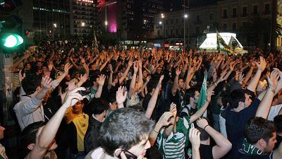 Δε σταμάτησαν τα πανηγύρια στο «Caravel» από τους οπαδούς του Παναθηναϊκού, με το που έφτασε η «πράσινη» αποστολή στο ξενοδοχείο. Οι 300 φίλοι των πρωταθλητών Ευρώπης «έστησαν» ένα τρελό πανηγύρι, αφού άναψαν φωτοβολίδες και αποθέωσαν παίκτες και Ζέλιμιρ Ομπράντοβιτς.
