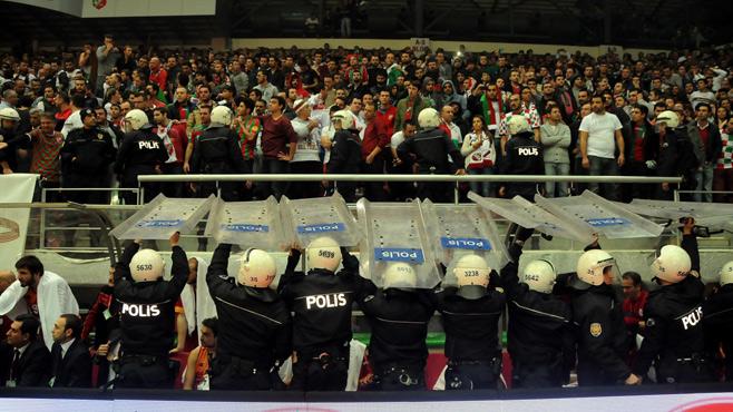 Πετούσαν αντικείμενα, τραυμάτισαν ανθρώπους στον πάγκο των φιλοξενουμένων, προκάλεσαν τη διακοπή του αγώνα για πολλή ώρα και τελικά ανάγκασαν την αποστολή της «Γαλατά» να αποσυρθεί στα αποδυτήρια με… φάλαγγα από τις δυνάμεις των ΜΑΤ.