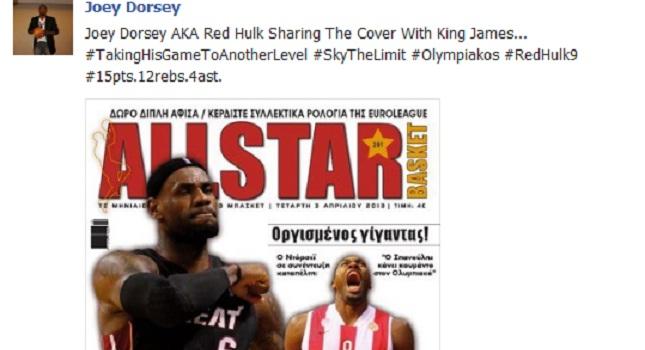 Ο Τζόι Ντόρσεϊ ανέβασε στη σελίδα που έχει στο Facebook το πρωτοσέλιδο του περιοδικού «All Star Basket», το οποίο φιλοξενεί συνέντευξή του, γράφοντας: «Τζόι Ντόρσεϊ ως “Red Hulk”, όπου μοιράζεται το πρωτοσέλιδο με τον Βασιλιά Τζέιμς».